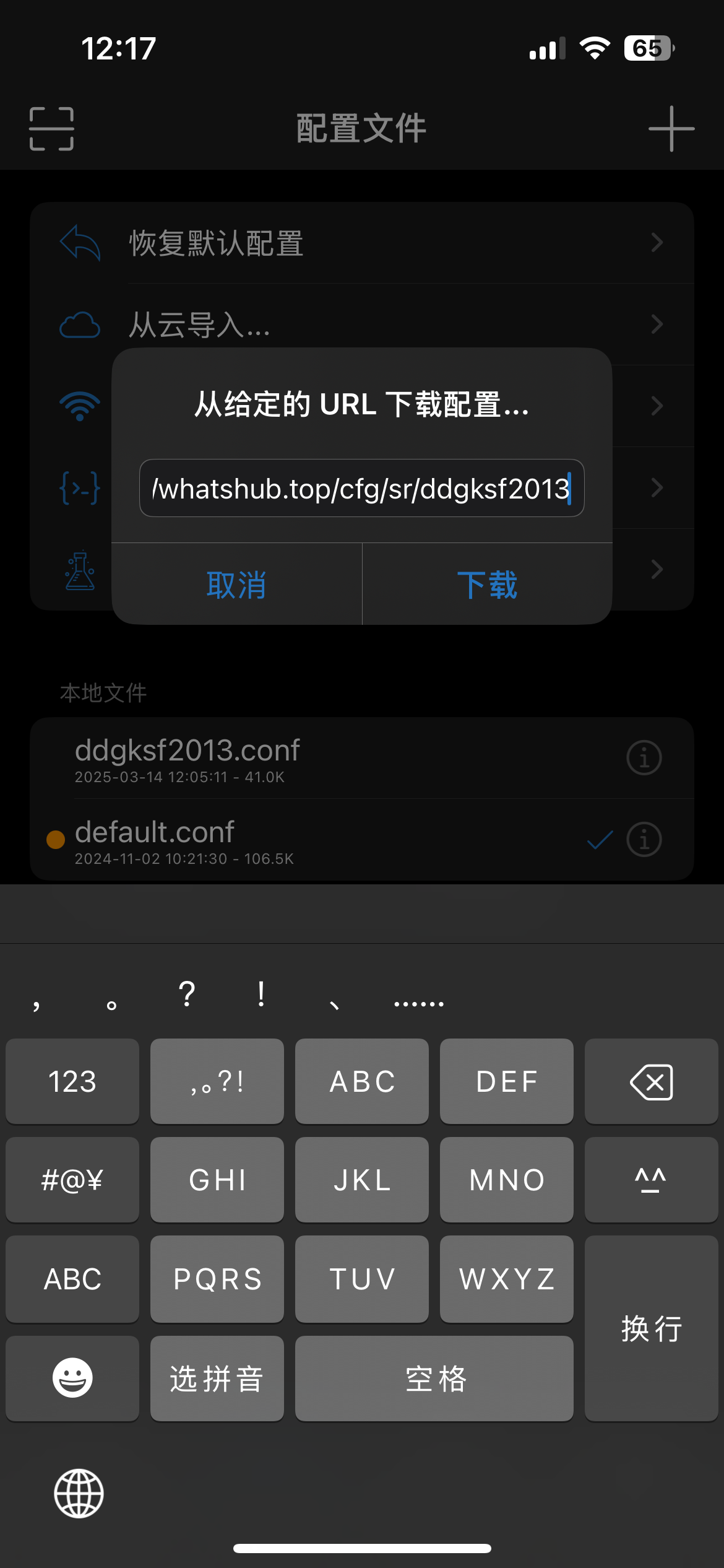 输入以下地址👇https://whatshub.top/config/shadowrocket_basic.conf